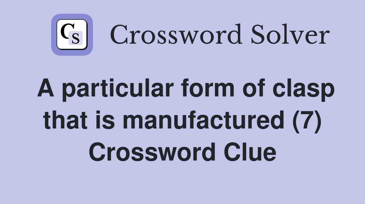 A particular form of clasp that is manufactured (7) Crossword Clue