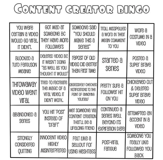 Content Creator Bingo: a Printable PDF to Connect and🍈 Descubra a