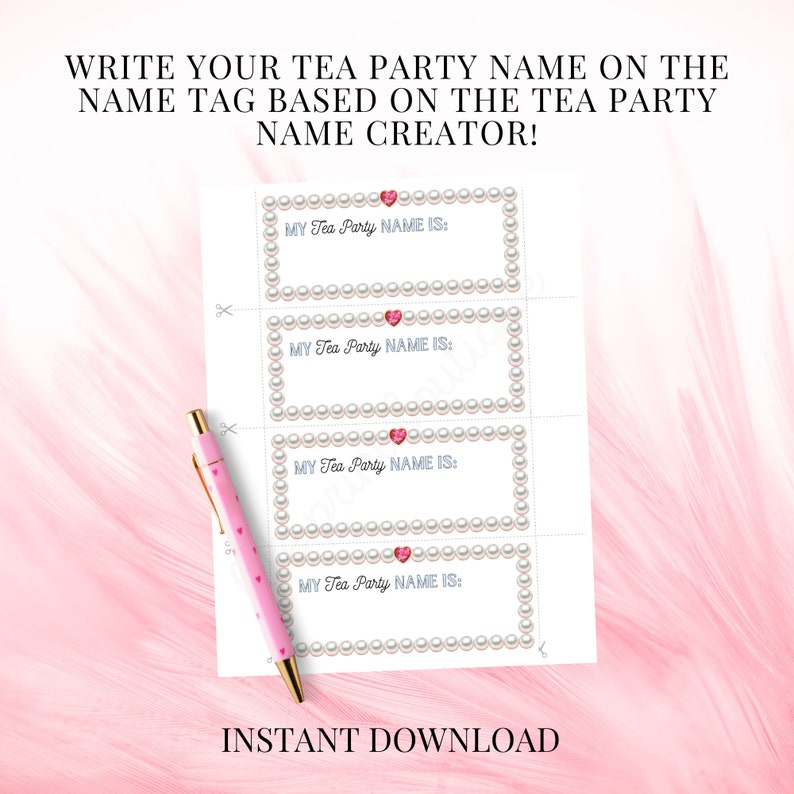 Tea Party Name Creator Printable Printable Tea Party Game Etsy