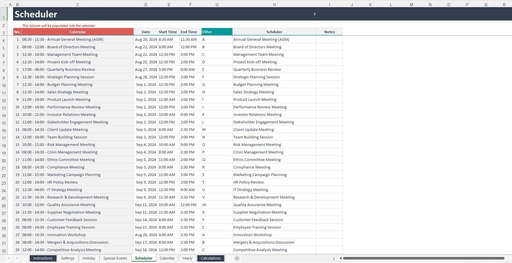 Dynamic Appointment Scheduler / Calendar Monthly View Template Excel XLS