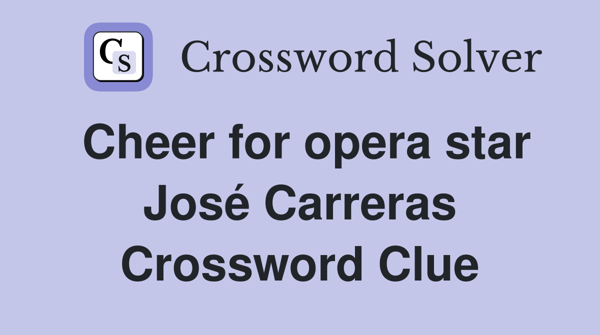 Cheer for opera star José Carreras Crossword Clue Answers Crossword