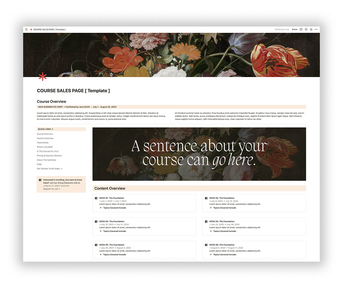 Notion Course Sales Page Template