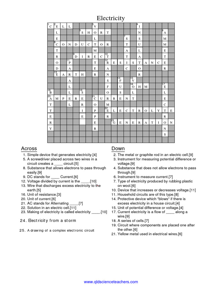 Crossword Electricity Answers 1 PDF Voltage Electrical Network