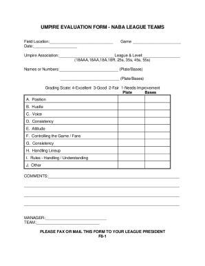 Fillable Online UMPIRE EVALUATION FORM NABA LEAGUE TEAMS Fax Email