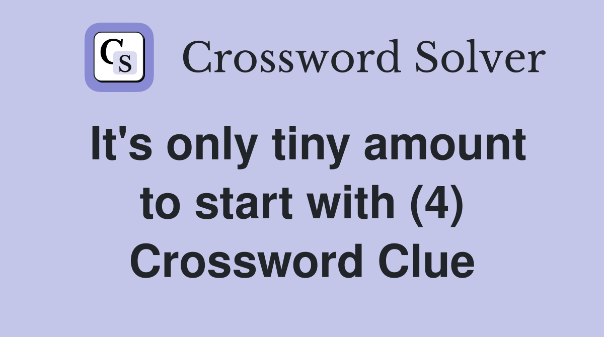 It #39 s only tiny amount to start with (4) Crossword Clue Answers