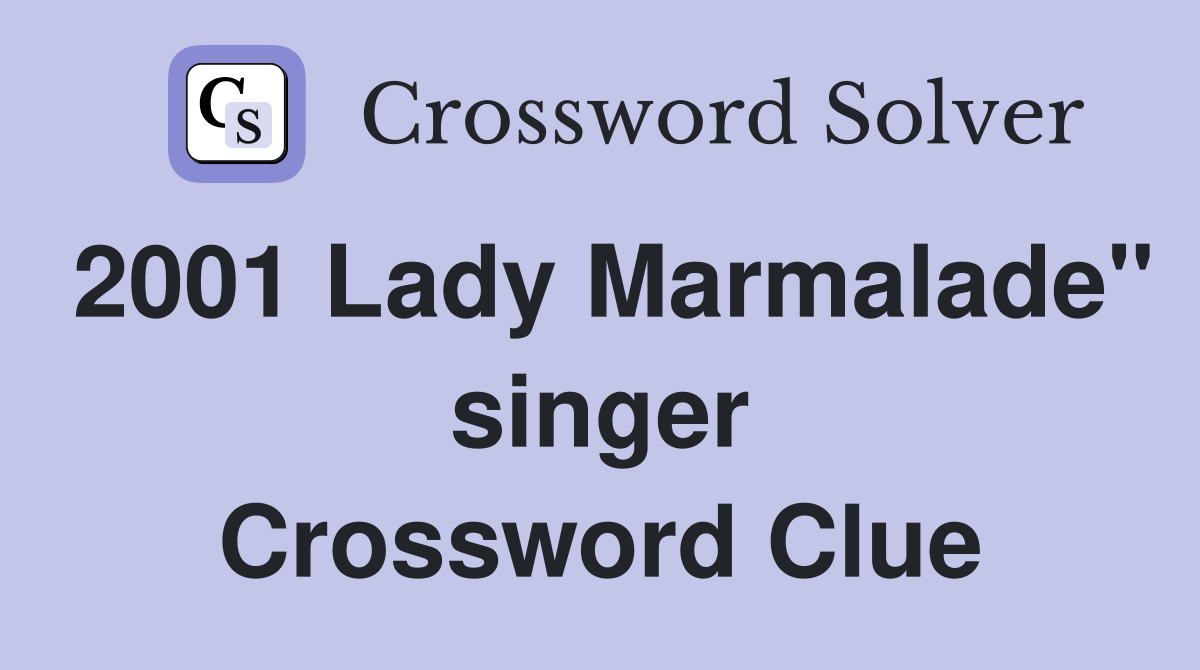 2001 Lady Marmalade quot singer Crossword Clue Answers Crossword Solver