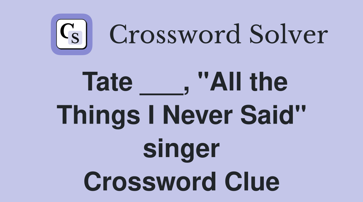 Tate quot All the Things I Never Said quot singer Crossword Clue Answers
