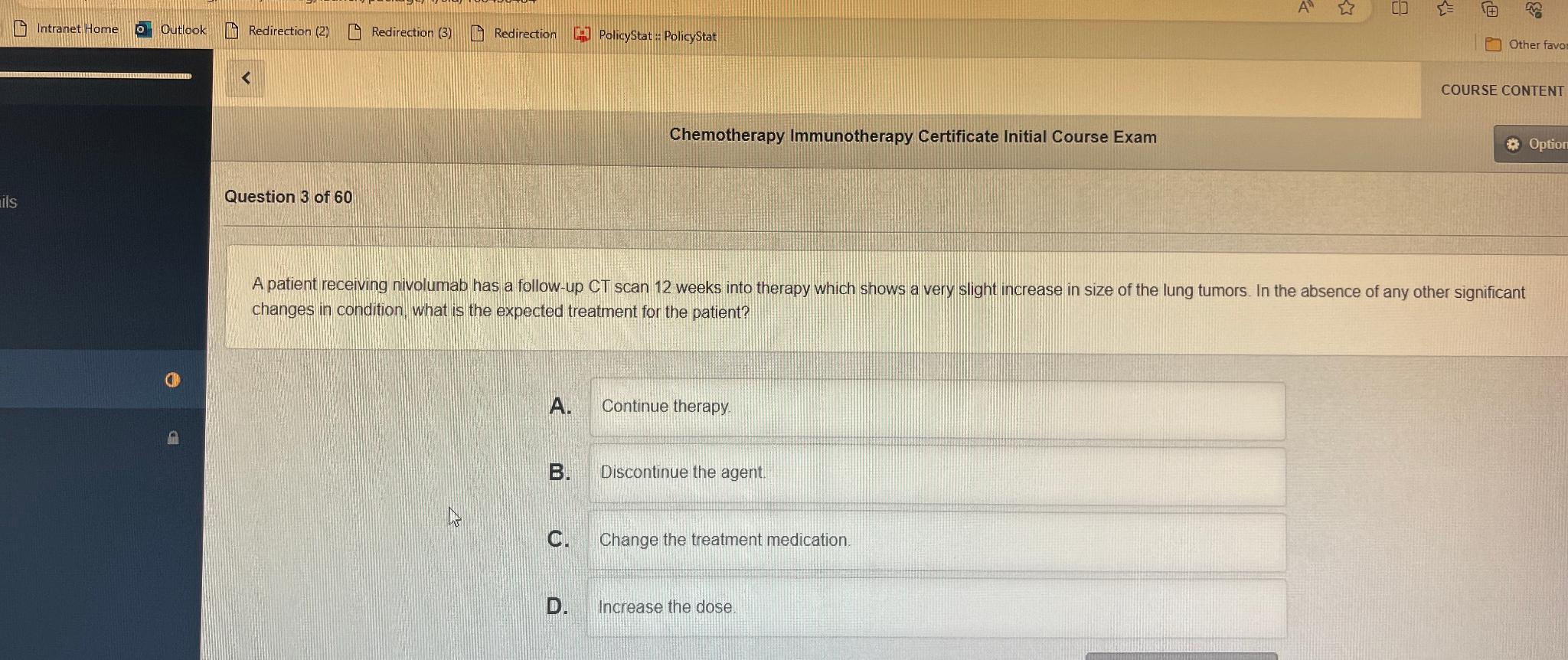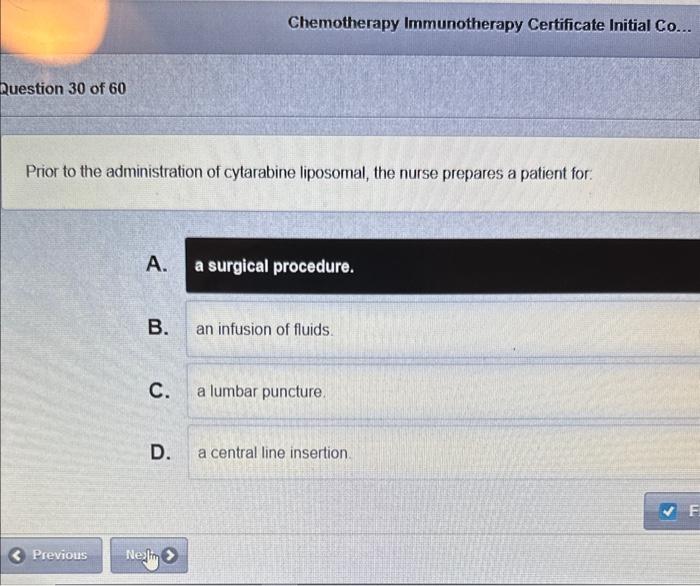 question 43 of 60 onsoncc chemotherapy immunotherapy certifi the