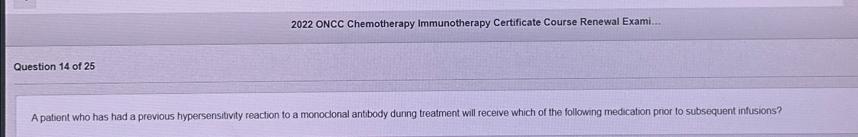 Solved 2022 ONCC Chemotherapy Immunotherapy Certificate Chegg com