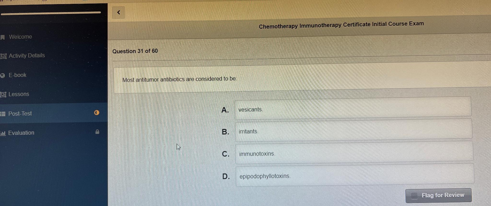 Chemotherapy/Immunotherapy Certificate Course (ONS ONCC) Questions And