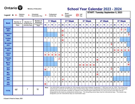 Ontario Schools Calendar