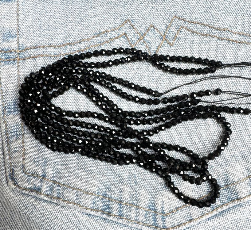 3 x schwarzer ONYX neu facettiert 3mm Strang 37 cm (Neu und