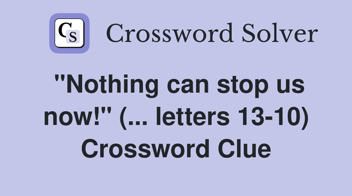 quot Nothing can stop us now quot ( letters 13 10) Crossword Clue Answers