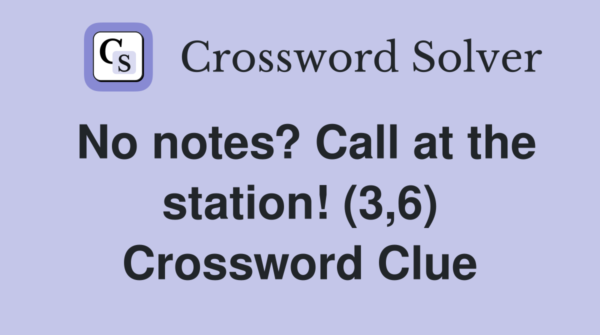 No notes? Call at the station (3 6) Crossword Clue Answers
