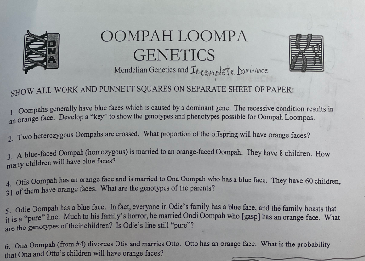 Oompa Loompa Genetics Worksheet Printable And Enjoyable Learning