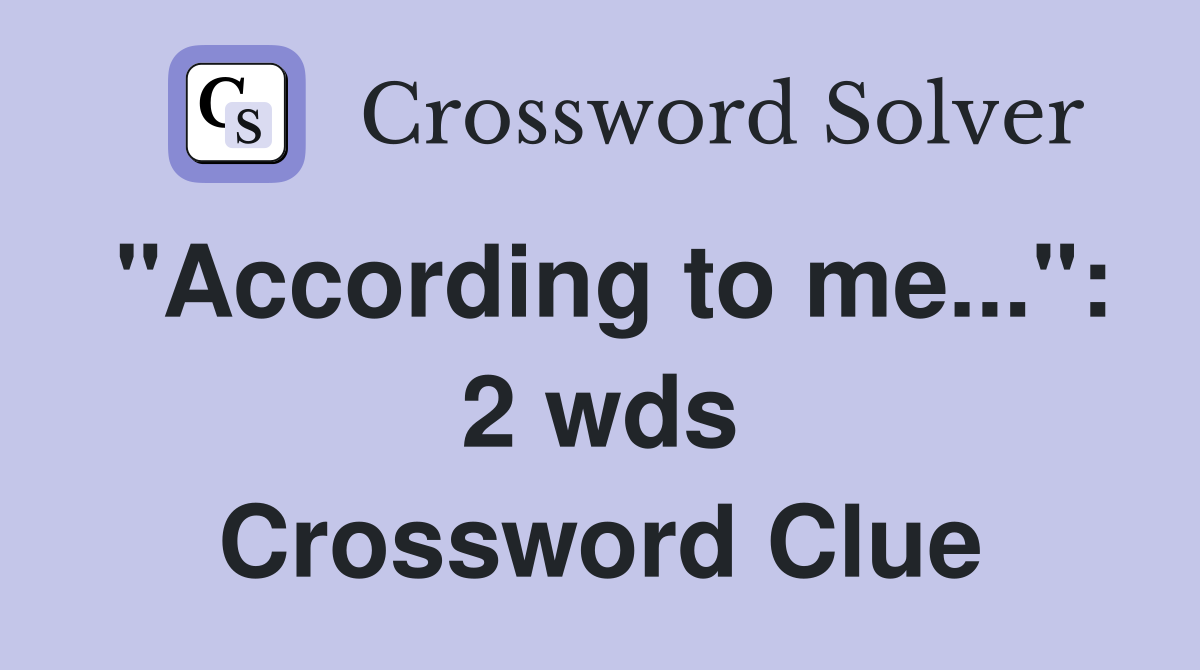 quot According to me quot : 2 wds Crossword Clue Answers Crossword Solver