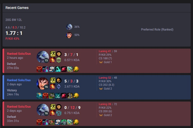 Página de estatísticas exibida incorretamente OP GG Help Center