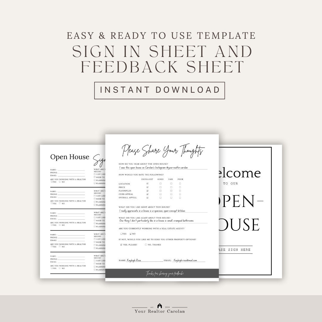Open House Sign in Sheet Welcome Sign Open House Flyer Realtor Open
