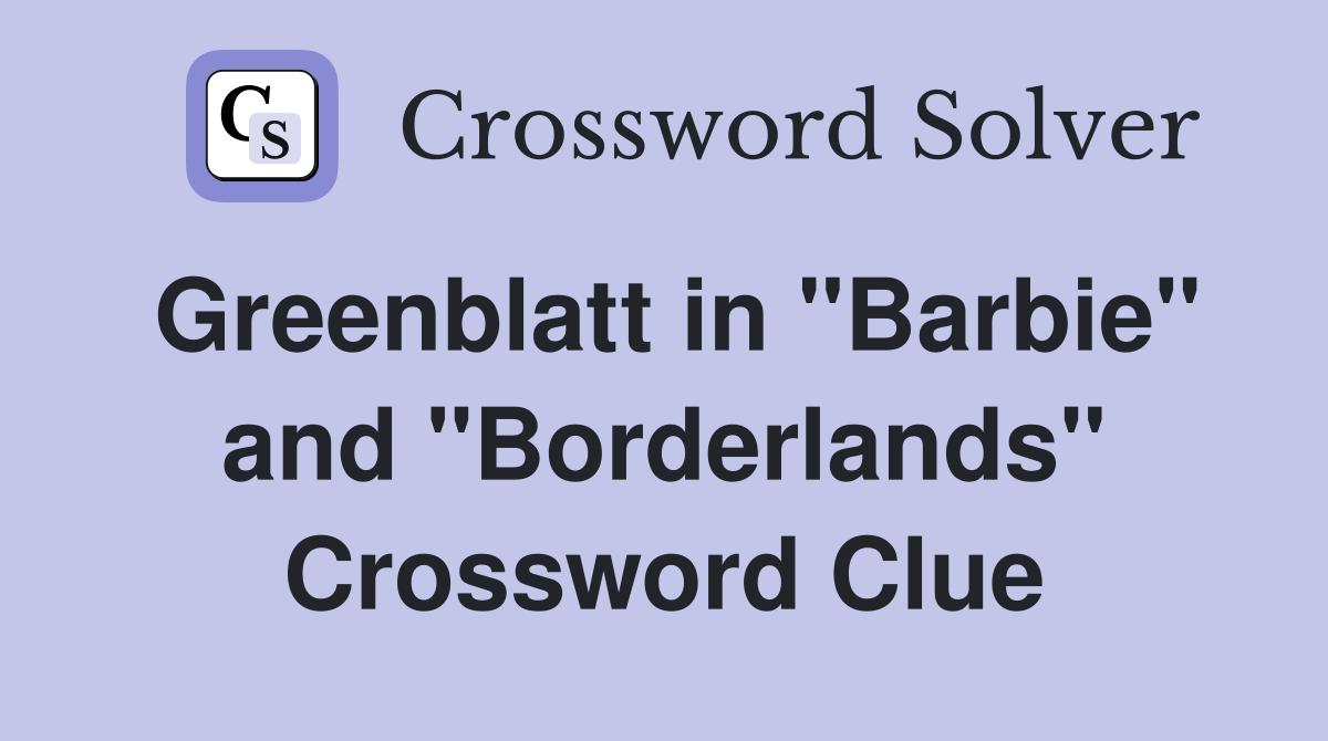 Greenblatt in quot Barbie quot and quot Borderlands quot Crossword Clue Answers