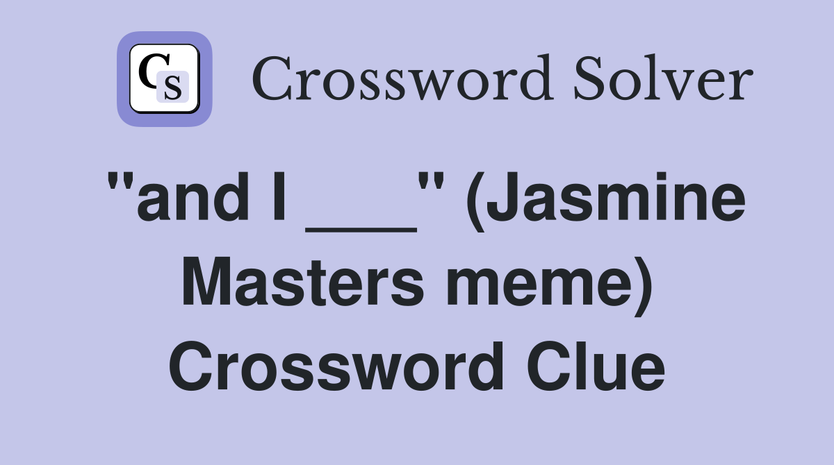 quot and I quot (Jasmine Masters meme) Crossword Clue Answers Crossword