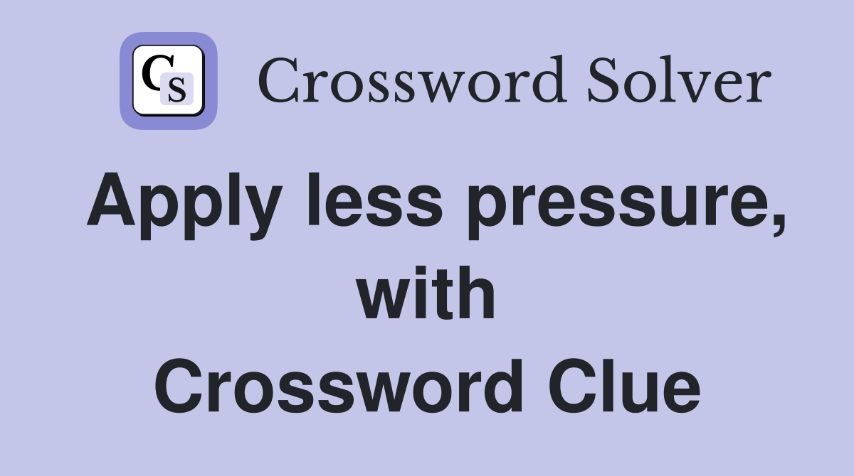 Apply less pressure with up Crossword Clue Answers Crossword Solver