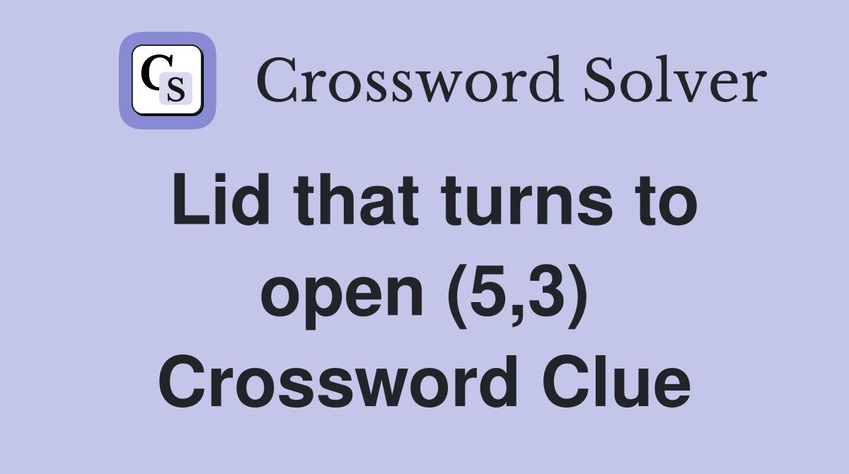 Lid that turns to open (5 3) Crossword Clue Answers Crossword Solver