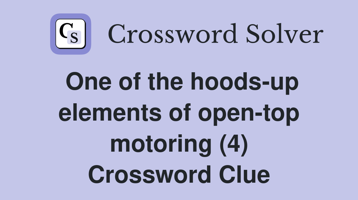 One of the hoods up elements of open top motoring (4) Crossword Clue