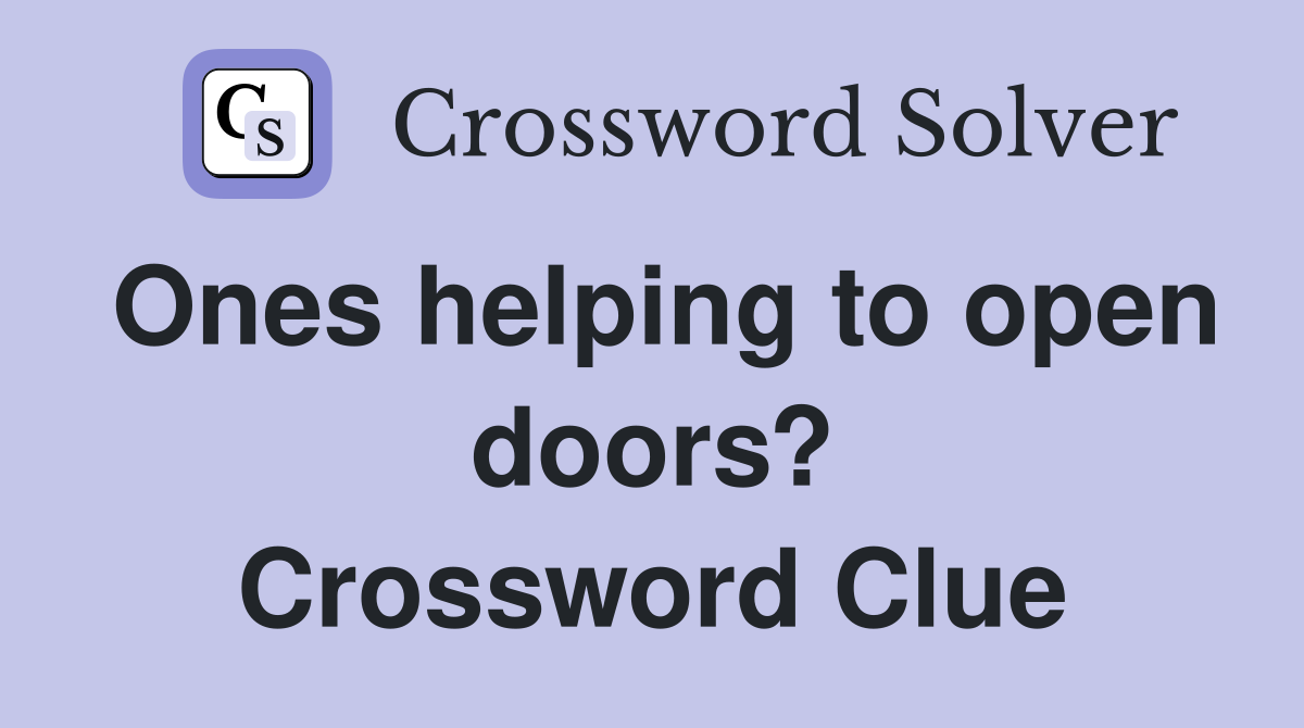 Ones helping to open doors? Crossword Clue Answers Crossword Solver
