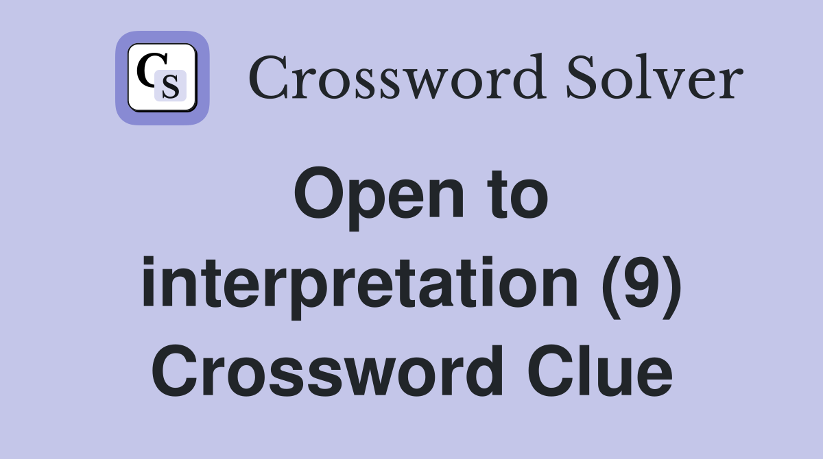 Open to interpretation (9) Crossword Clue Answers Crossword Solver