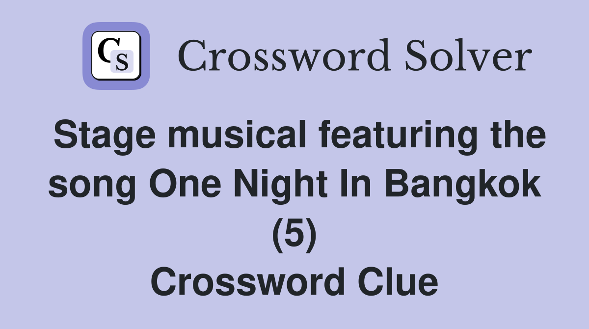 Stage musical featuring the song One Night In Bangkok (5) Crossword