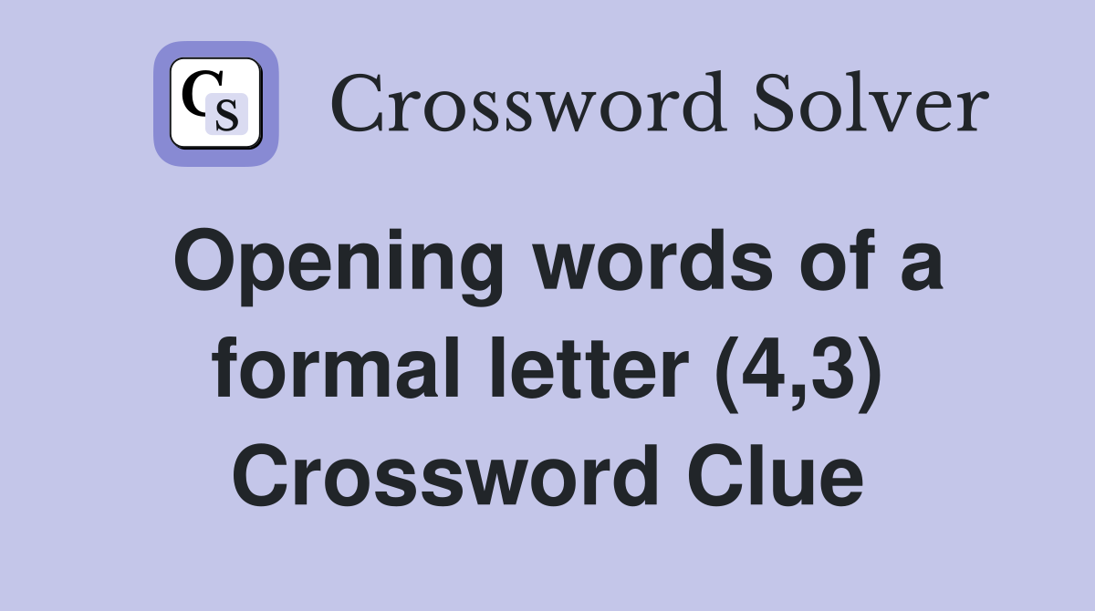 Opening words of a formal letter (4 3) Crossword Clue Answers