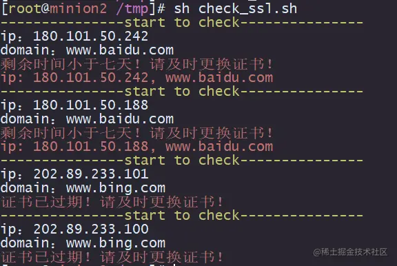 SSL 证书过期巡检脚本哈喽大家好,我是咸鱼 我们知道 SSL 证书是会过期的,一旦过期之后需要重新申请。如果没有及时更 掘金