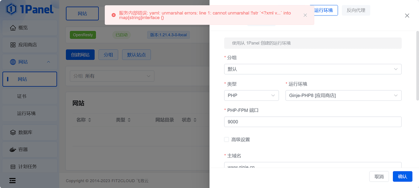 用运行环境创建网站报错 1Panel 社区论坛 FIT2CLOUD 飞致云