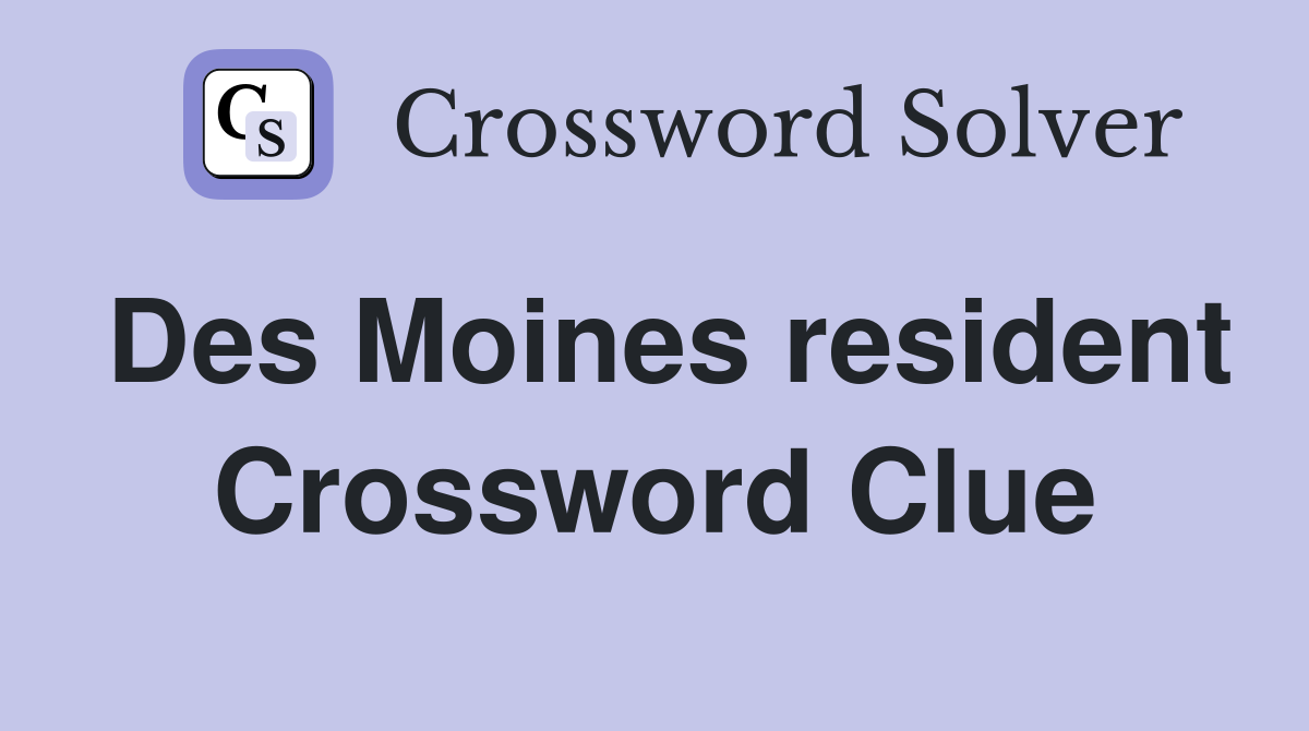 Des Moines resident Crossword Clue Answers Crossword Solver