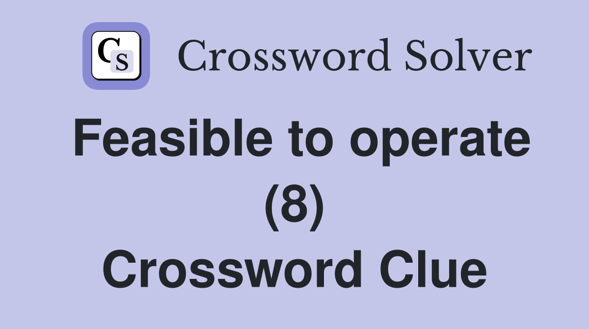 Feasible to operate (8) Crossword Clue Answers Crossword Solver