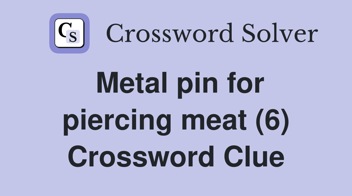 Metal pin for piercing meat (6) Crossword Clue Answers Crossword Solver