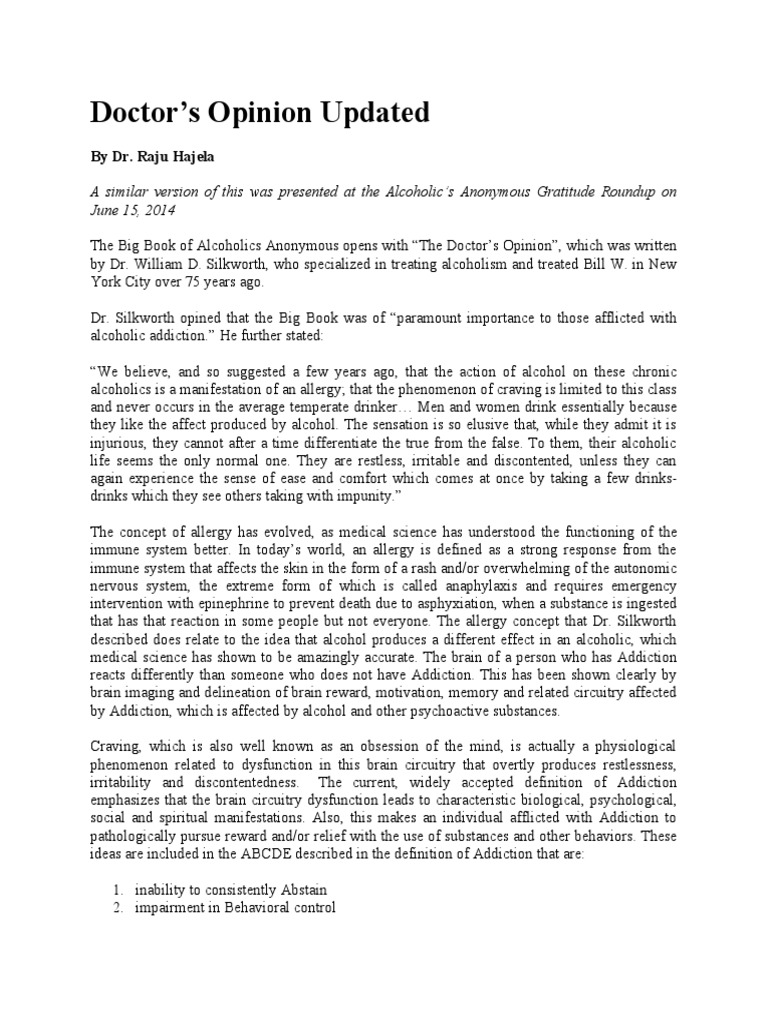 Doctors Opinion UPDATED PDF Alcoholism The Big Book (Alcoholics