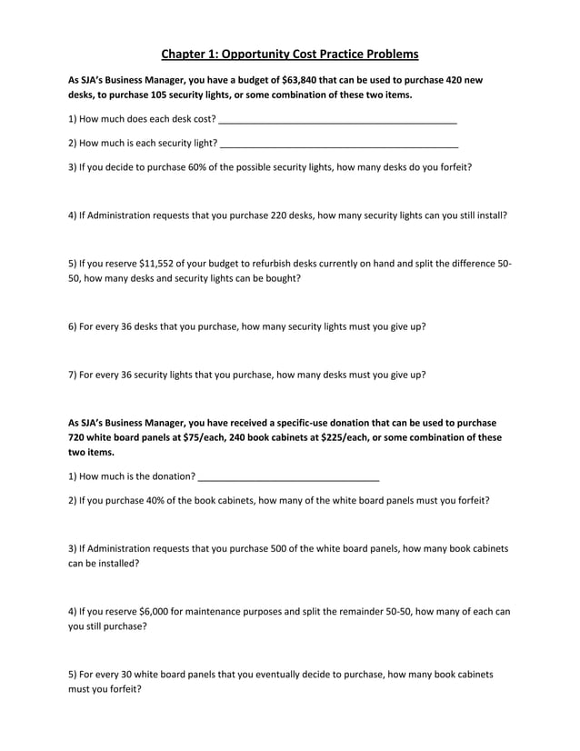 Opportunity cost worksheet DOCX