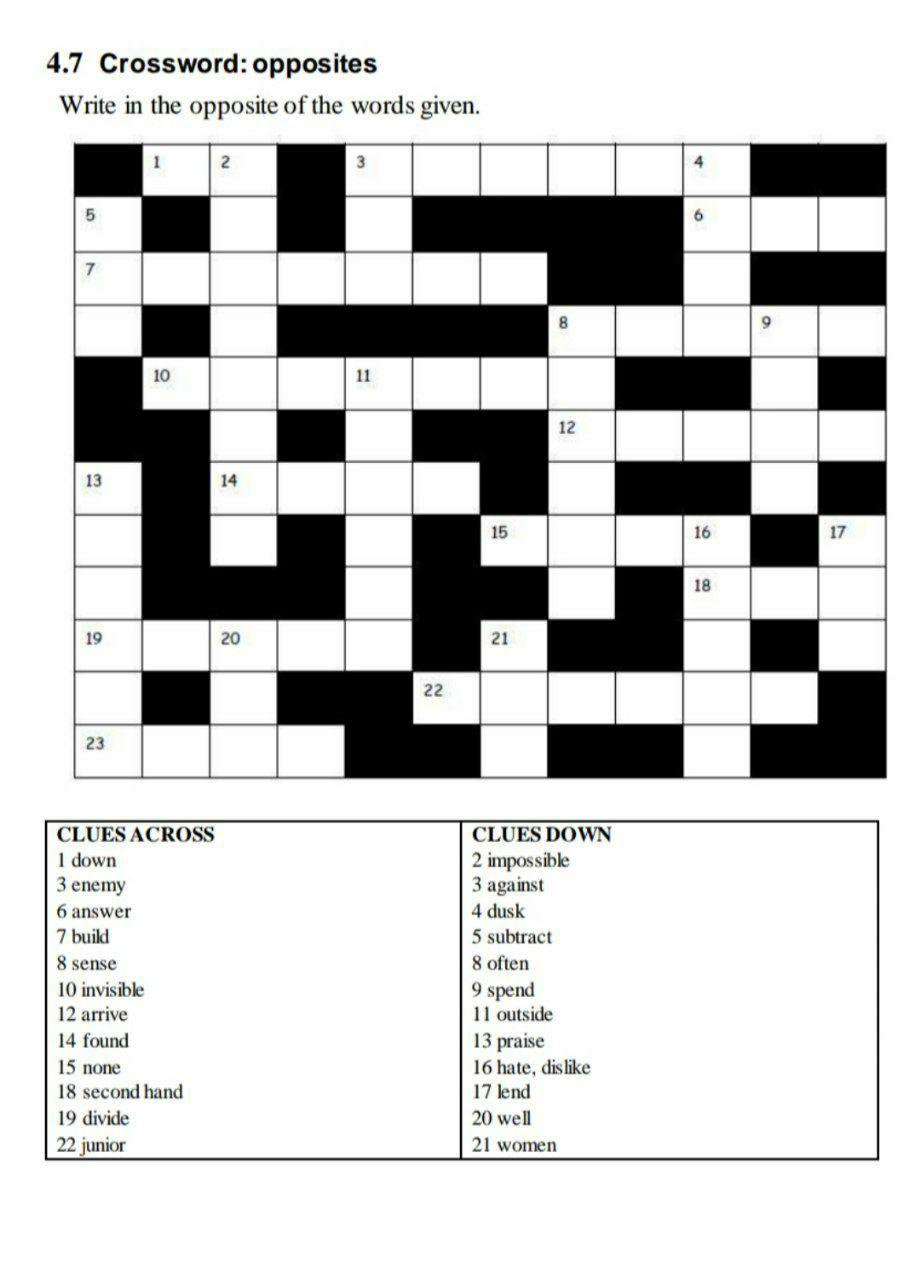 Crossword Opposite in 2024