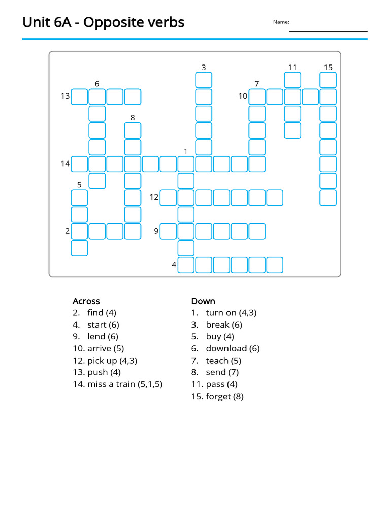 Opposites Crossword: What s The Antonym? Worksheets 99Worksheets