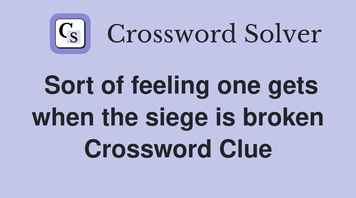 Sort of feeling one gets when the siege is broken Crossword Clue