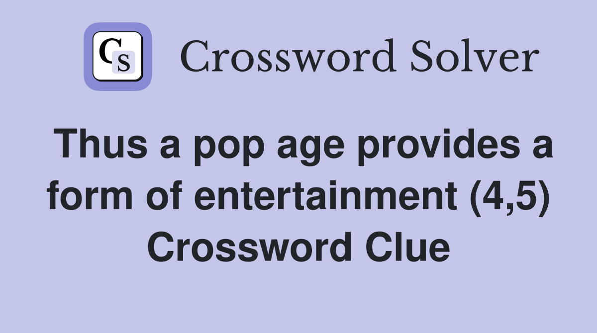 Thus a pop age provides a form of entertainment (4 5) Crossword Clue