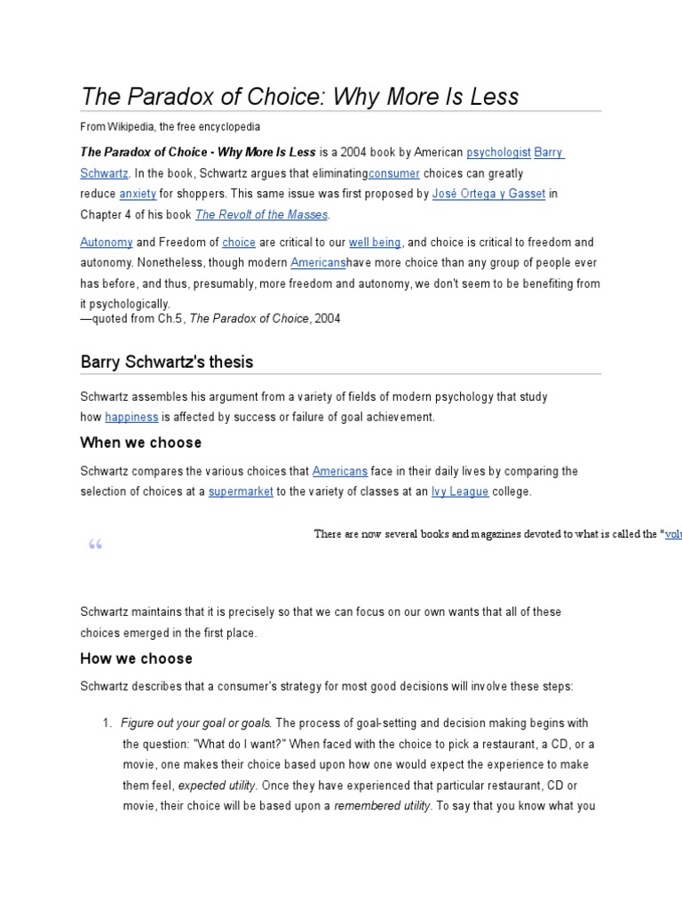 The Paradox of Choice PDF Psychological Concepts Behavioural Sciences