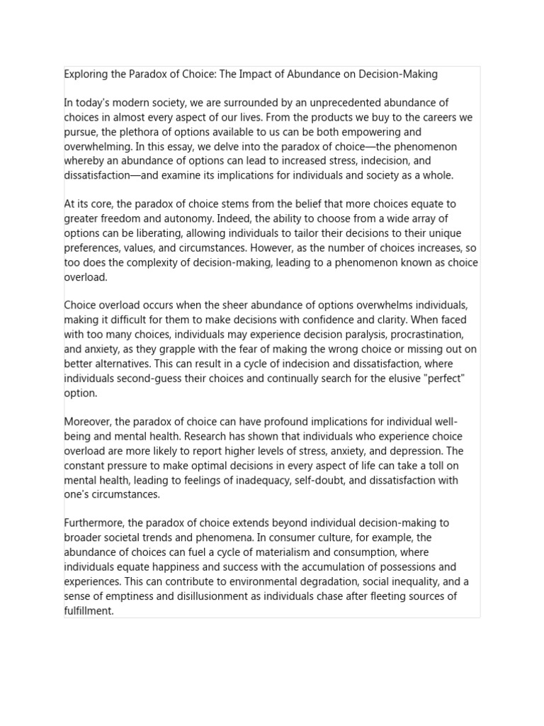Exploring The Paradox of Choice PDF Choice Decision Making