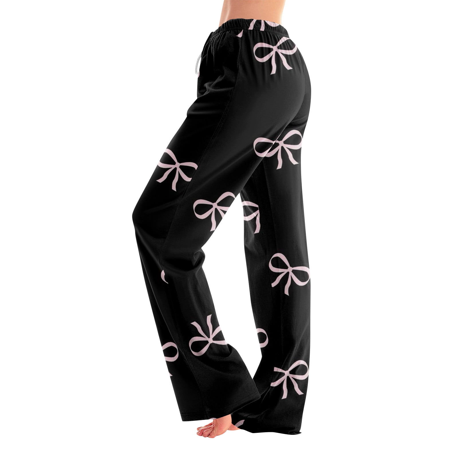 Women #39 s Comfy Pajama Pants with Red Bow Print Soft Lounge Sleepwear