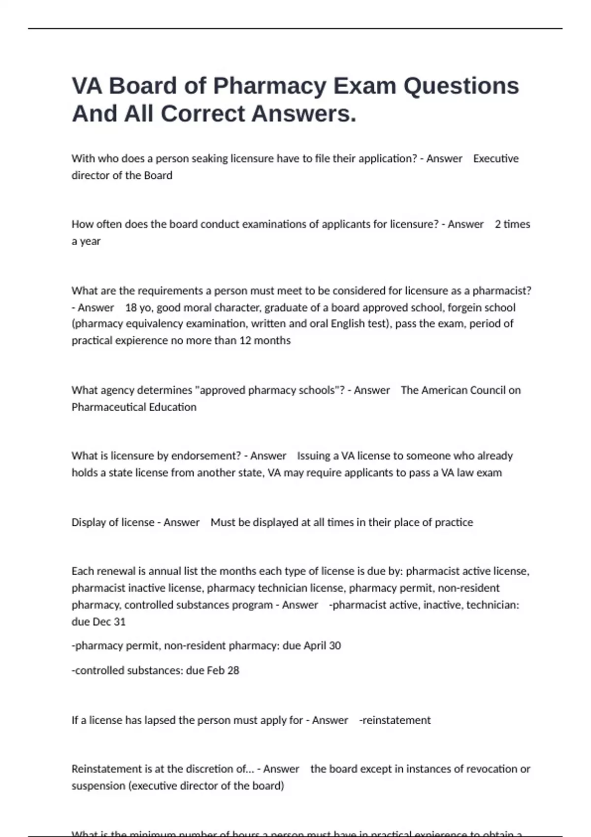 VA Registered Technician Exam ( Questions And Answers)Package Deal