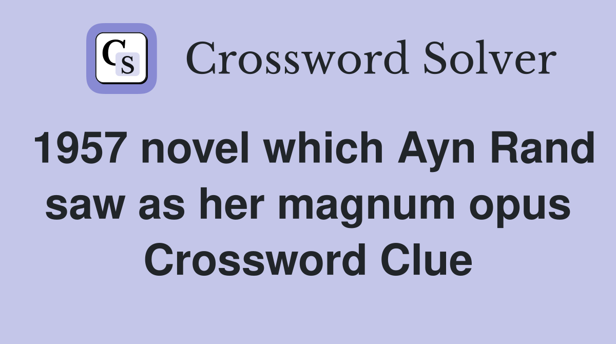 1957 novel which Ayn Rand saw as her magnum opus Crossword Clue