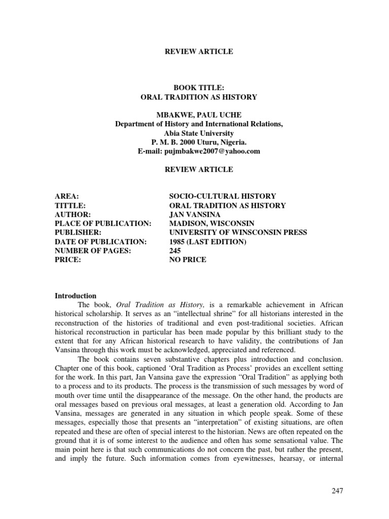 (PDF) Oral tradition