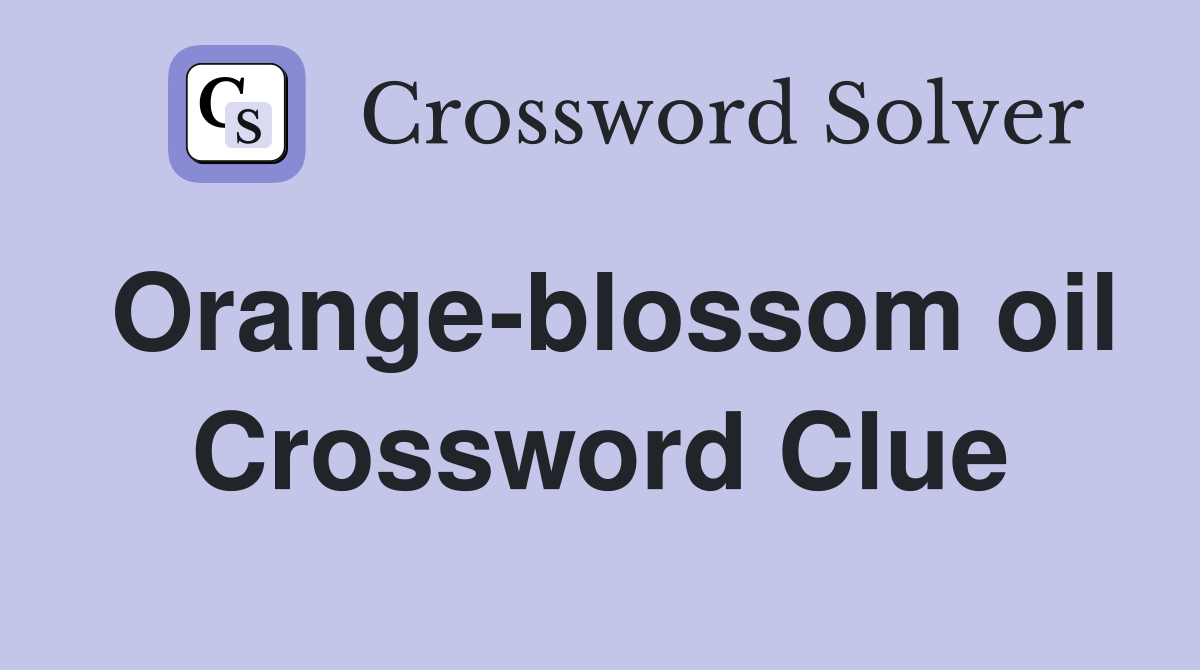 Orange blossom oil Crossword Clue Answers Crossword Solver