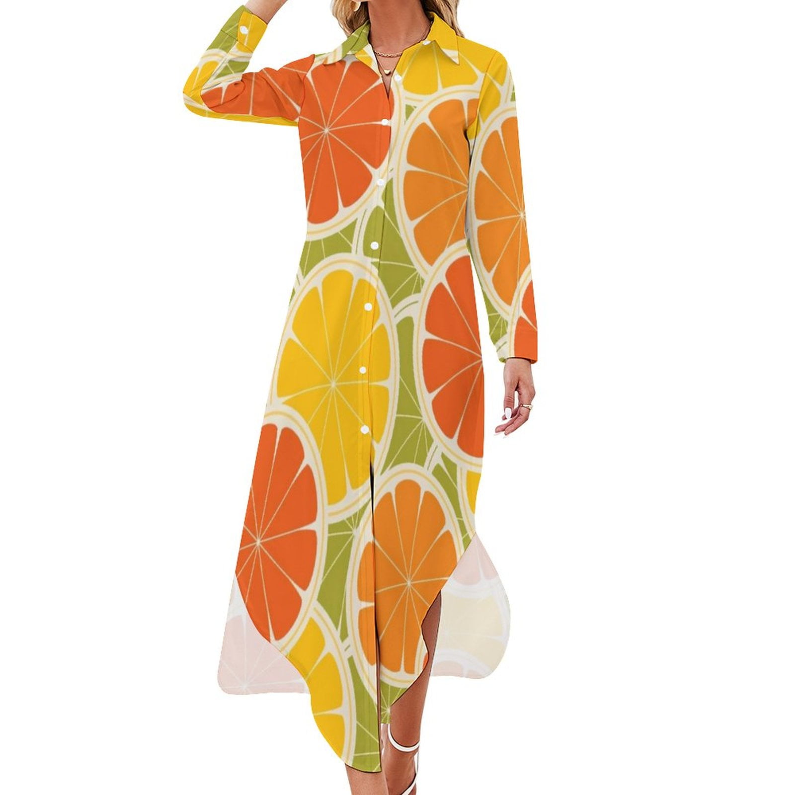 Colorful Fruit Print Chiffon Dress Orange Lemon Pretty Dresses Women